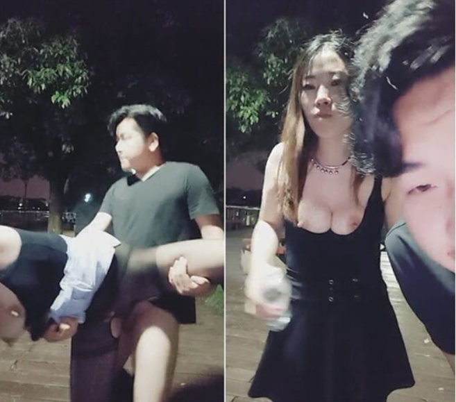 姐弟倆膽子大,深夜小公園露奶口爆,天冷轉到車後座玩伡震