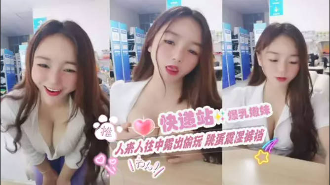 快递站小妹 爆乳嫩妹人来人往中露出偷玩 跳蛋震湿裤裆 被搭话时相当刺激 大饱眼福不知高潮