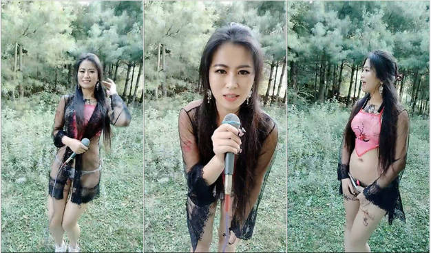 戶外才藝少婦住播,先唱歌助助興,性感肚兜飄揚蕩蕩,撩起衣服露出